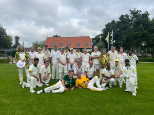 Thus began an enjoyable 30-over match with many highlights, fantastic plays (or misplays), a great atmosphere, and plenty of hilarity; nevertheless, there was certainly still a high level of play at times, not least from the celebratory players themselves. The precise scoreline will be a topic for later Groen-Geel history books, but it was naturally decided in the final over, with Han's Hurricanes pulling out the winning end in the nick of time. The feeling that "cricket was the real winner today" prevailed, of course.