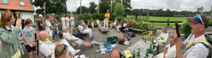Met dankbaarheid voor de lange rol van betekenis van beide heren binnen de vooral zami teams van Groen-Geel werd nog lang en uitgebreid teruggeblikt op alle cricket-avonturen in het verleden, de wedstrijd en de gezamenlijke historie bij Groen-Geel, dat tenslotte ook haar 75-jarig bestaan (cricket-afdeling) vierde. En er werd door Han en Bart, Uvuraj en (kort) mijzelf gespeecht en drank, bloemen en kado's uitgewisseld, waarna beide heren nog de door iedereen getekende wedstrijdbal ontvingen. Onder het genot van hapje, drankje, en bbq werd het nog een late en gezellige avond. En voor de 'reunisten' onder de deelnemers smaakte het zoveel naar meer dat wellicht een jaarljkse traditie is geboren (looking at you Miedema, Krabbie)!