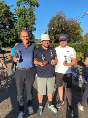 Bij de heren was het Erik die met scherp en zeer gedegen spel het initiatief pakte. Op een gegeven moment stond hij zelfs 4 slagen onder de baan! Daar was Pieter niet tegen opgewassen. Op het einde leek het nog even spannend te gaan worden, maar Erik hield knap stand en won de wedstrijd uiteindelijk met 4 slagen voorsprong. Pieter werd 2e en Victor wist Herman, Matias en Stijn achter zich te houden.